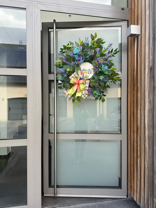 Zomers welkomskrans - paars en groen