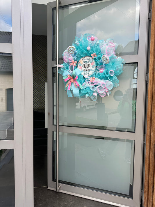 Geboortekrans - Blauw en Roze - "It's a Boy"