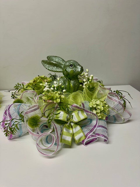 Paaskrans groen glitter konijn - liggend